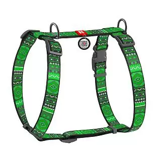 Шлейка Waudog анатомическая H-образная Nylon с QR-паспортом рисунок «Этно зеленый» размер M нейлон 50-80x2 см