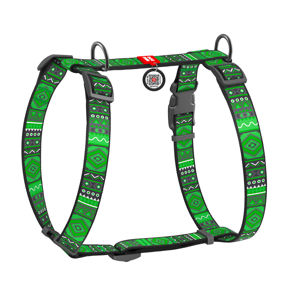 Шлейка Waudog анатомическая H-образная Nylon с QR-паспортом рисунок «Этно зеленый» размер S нейлон 30-50x1,5 см