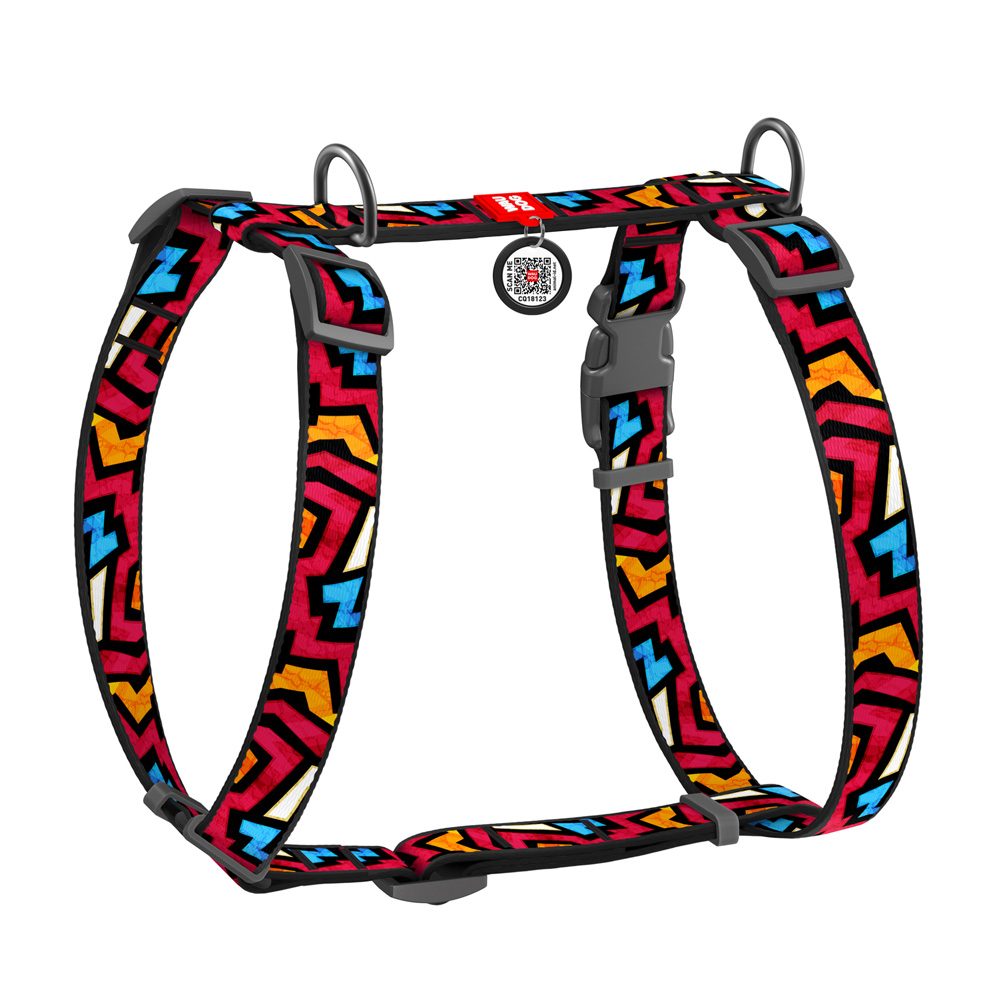 Шлейка Waudog анатомическая H-образная Nylon с QR-паспортом рисунок «Граффити» размер L нейлон 60-100x2,5 см
