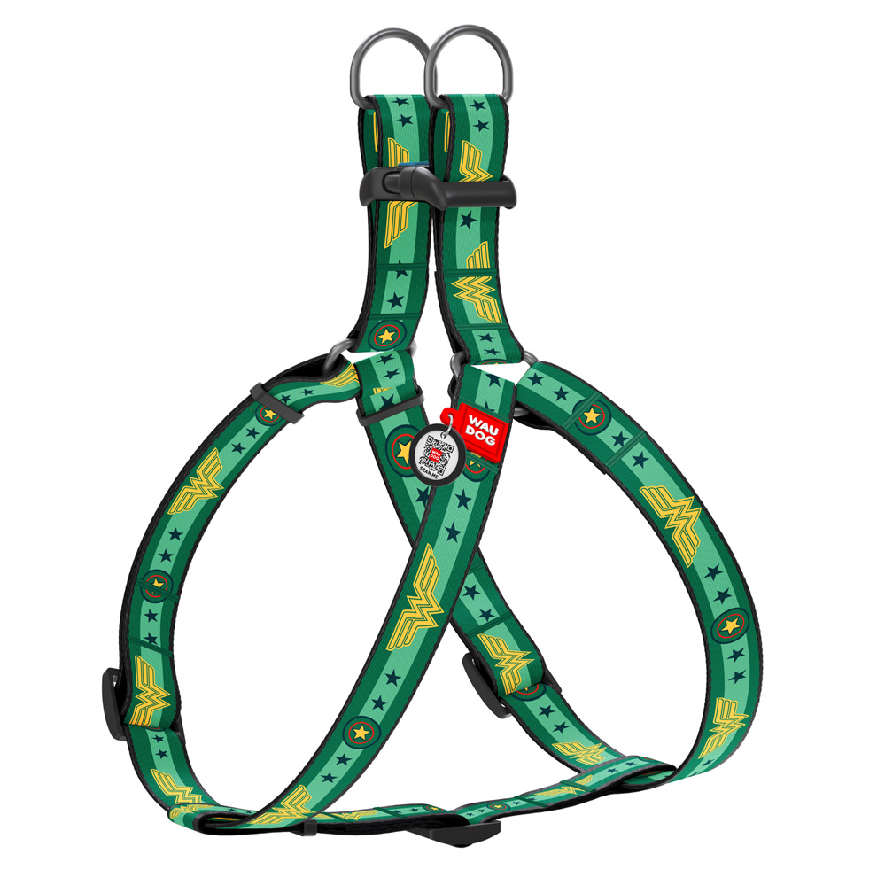 Шлейка Waudog анатомическая Nylon c QR паспортом рисунок "Чудо-женщина 2" пластиковый фастекс размер XS нейлон 28-40x1 см