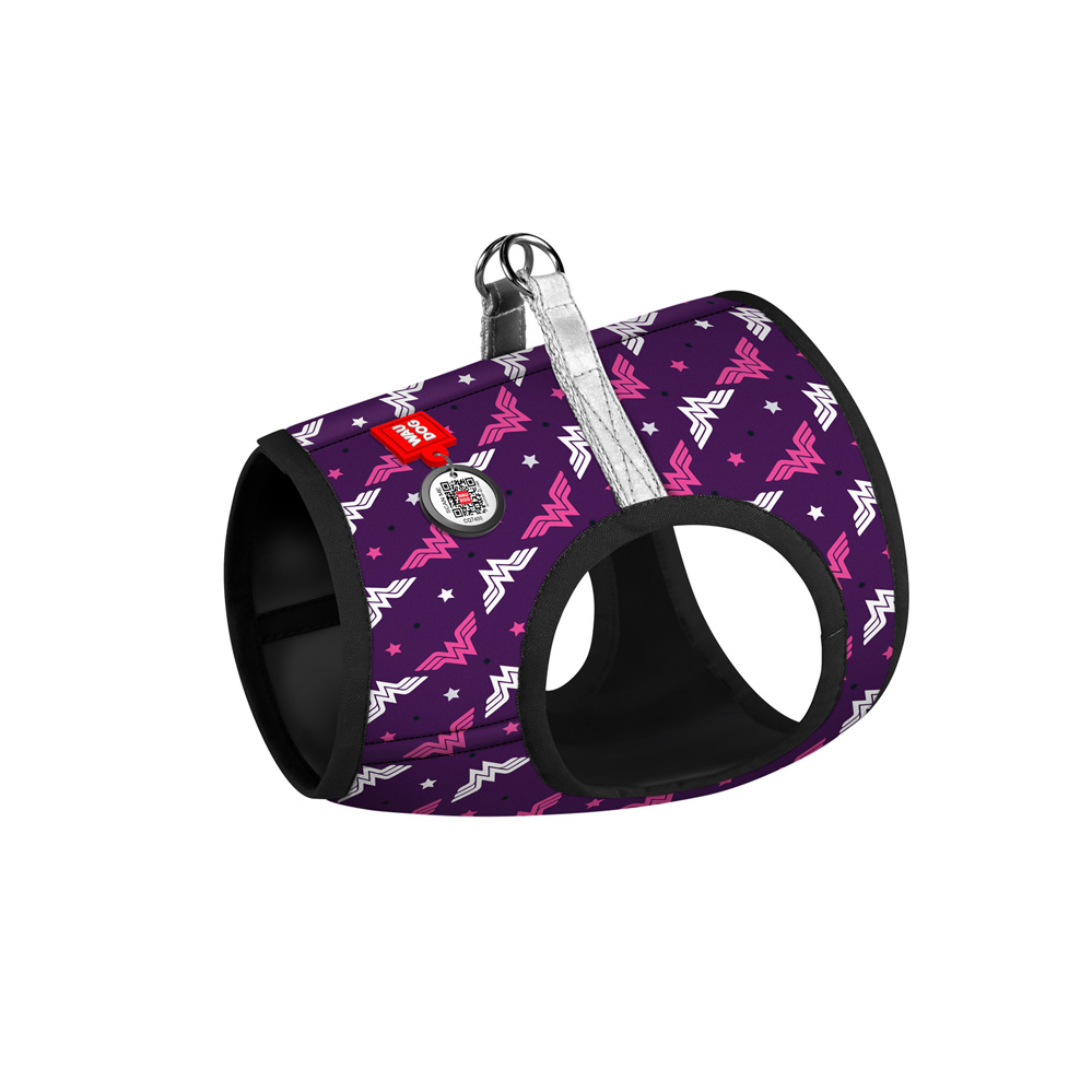 Шлейка Waudog мягкая Clothes с QR паспортом рисунок «Чудо-женщина фиолет» размер XS2 нейлон 28-31x20-22 см