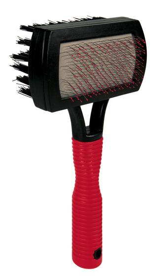 Щётка Trixie с пластиковой ручкой двусторонняя пуходёрка 17x10