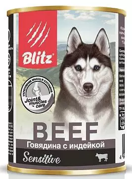 Влажный корм для собак Blitz Sensitive говядина с индейкой 0,4 кг