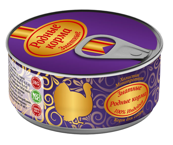 Влажный корм для собак Родные Корма Знатные 100 % Индейка