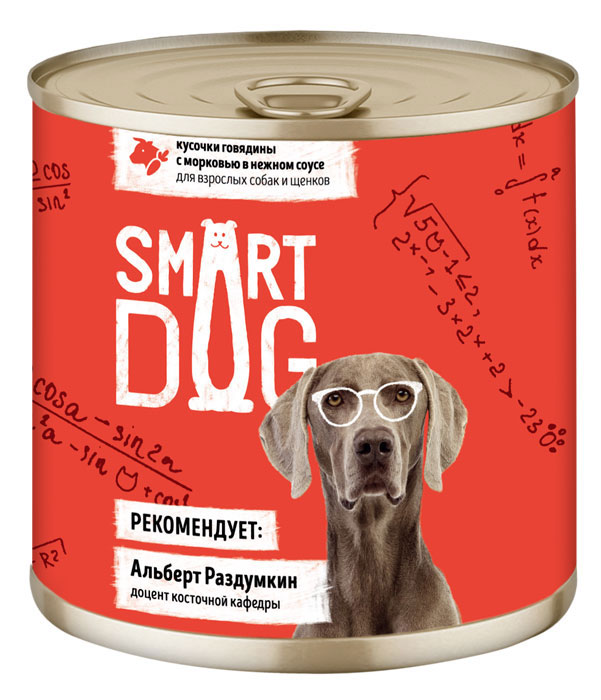 Влажный корм для собак Smart Dog кусочки говядины с морковью в нежном соусе