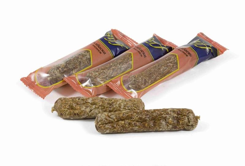 | Краткое описание | Колбаска с лососем Мини лакомство для собак всех пород |