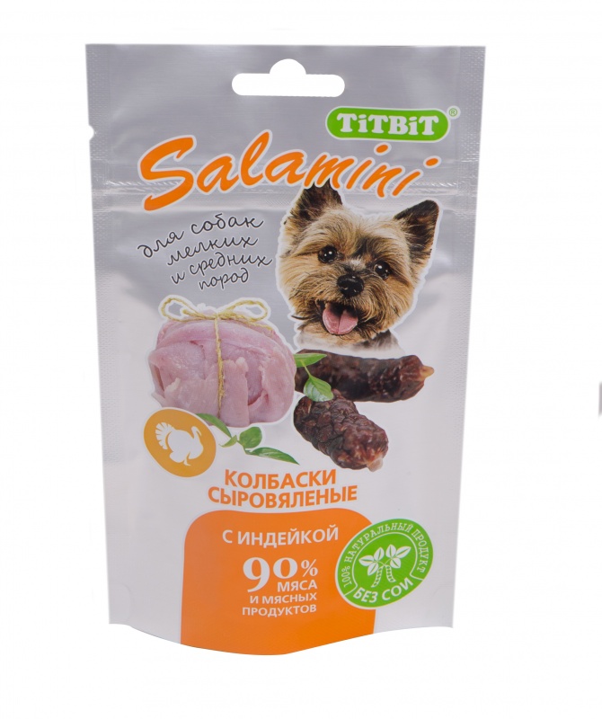 Лакомство для собак Titbit Колбаски сыровяленые Салямини с индейкой