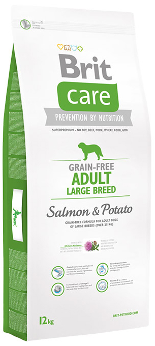 Brit Care Salmon & Potato Adult Large Breed - сухое питание из Чехии, не содержащее зерна, для крупных собакПродукт рекомендован для крупных пород собак, вес которых превышает 25 кг. Гипоаллергенный состав не содержит ГМО, пшеницу, кукурузу и сою.