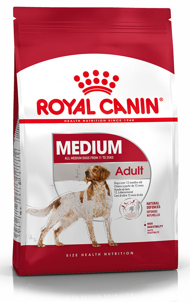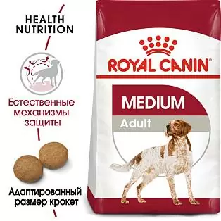 Корм для собак Royal Canin Medium Adult Корм сухой для взрослых собак средних размеровК 12 месяцам ваша собака средних размеров становится взрослой с точки зрения физического развития. Но в этот период качественное питание важно для нее в той же степени, что и в период роста. Обеспечьте своей собаке рацион, содержащий все необходимые питательные вещества в правильных пропорциях для поддержания ее здоровья.