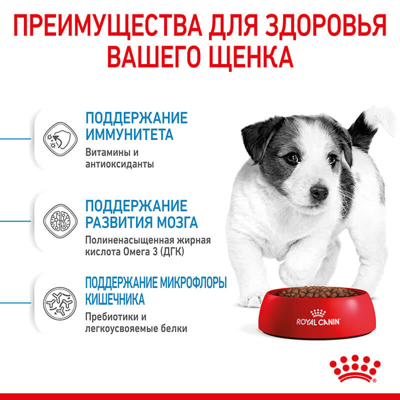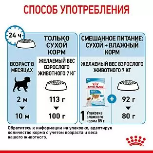 Продукт ROYAL CANIN® Mini Puppy разработан с учетом потребностей в питательных веществах щенков мелких размеров (вес взрослой собаки от 4 до 10 кг) в возрасте от 2 до 10 месяцев.