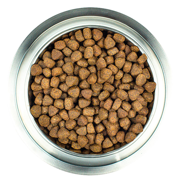 Ингредиенты | Курица 57% (свежая курица 25%, дегидрированная курица 18%, сухой куриный белок 5%, куриный соус 5%, куриный жир 4%), горох, сушеный картофель, льняное семя 3 %, свекольная пульпа 3%, лососевый жир 2%, морковь 0,5 %, яблоко 0,5%, сушеный корень цикория (источник фруктоолигосахаридов и инулина) 0,5%, экстракт дрожжей (источник маннанолигосахаридов) 0,5%, Д-глюкозамин гидрохлорид 400 мг/кг, хондроитина сульфат 300 мг/кг, брокколи, шпинат, томаты, клюква, черника 0,01%, юкка Шидигера. |