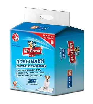 | Краткое описание | Подстилки Mr.Fresh Expert Regular: ✔ Быстро впитывают влагу ✔ Надёжно удерживают запах ✔ Защищают от протекания Пелёнки Mr.Fresh Expert Regular многослойные, каждый слой выполняет определённую задачу: • Специальная пористая структура подстилки за секунды |